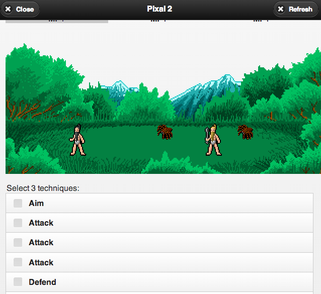 PX2, days 9/10ish slashJanuary 19, 2014February 17, 2025Pixal2 Post navigation PreviousNext Allow selecting options for slots on pixal creation (i.e. hair / beard, etc) Show player party and enemies on battle screen (WIP) Allow switching attacker and target while in battle (backend) Lots of other internal stuff Share this: Click to share on X (Opens in new window) X Click to share on Facebook (Opens in new window) Facebook Like Loading... Related