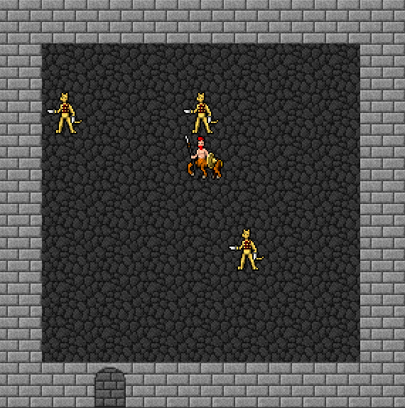 Advancement! Lot’s of infrastructure going behind the scenes. Hero can now move around the rooms and interact with static monsters.
