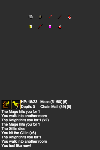 Each time you go down into a new level you get a chance to improve either your strength, hit points of carry capacity.