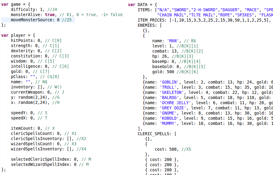 Now that I know a bit more about the game whose source code we have, my plans have shifted a bit from a verbatim copy retaining all bugs to a slightly corrected version with no critical or obvious bugs (I can’t help but imagine how hard it was to debug a program back then, and this is the first iteration!), then produce an optional tweaked version with better user experience and gameplay balance.