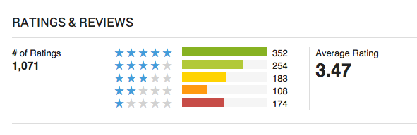 We also have 1.000 ratings, and still struggle to have at least 2x as much 5 stars ratings than 1 star; it’s hard since most 1 star ratings leave no feedback… and it is possible that our current tech stack is still not covering 100% of the potential devices…