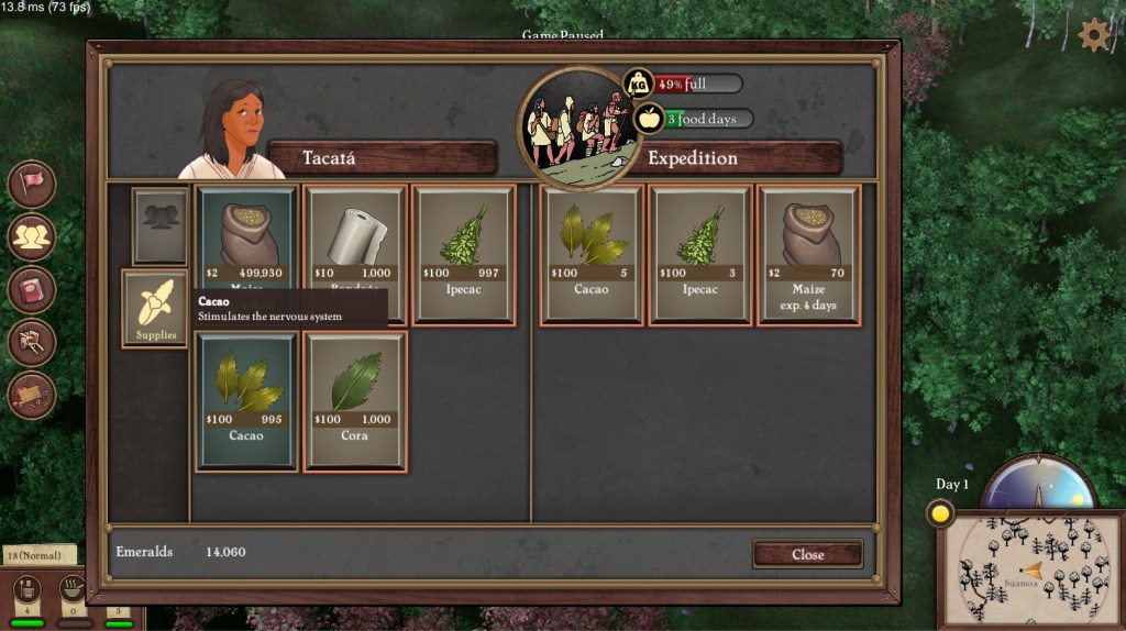 At the end of the CREA Digital project, last year, we had a working version of this scenario (and three others), for which we decided to activate a “narrative mode” in which the player had to take less care about his expedition and could focus more on the story that was unfolding. I decided to disable it now for these campaigns to have more interesting elements. You now have to engage with the random events system and have to buy supplies and take care of your expedition members