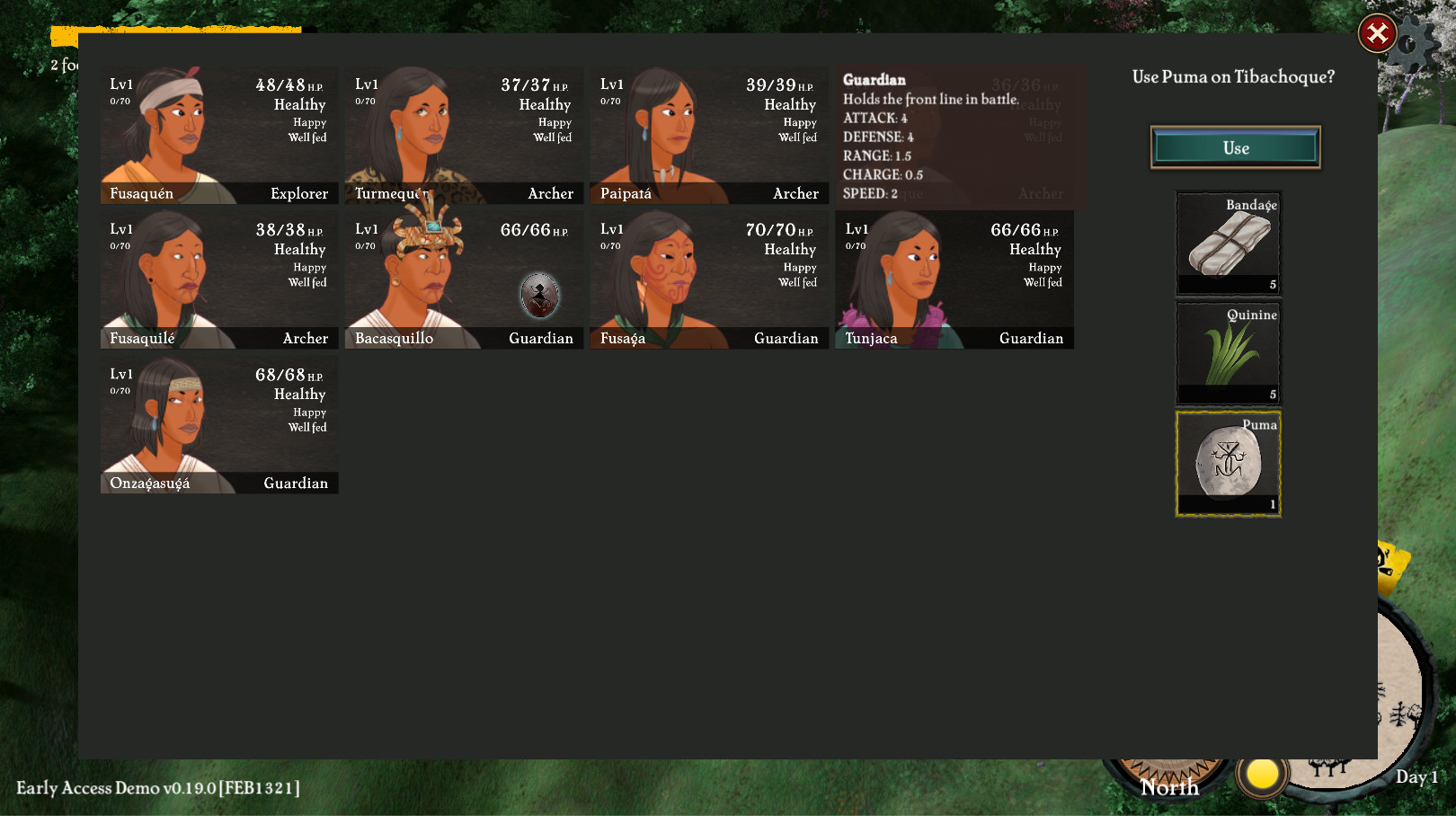 Camping also got some changes, the most important being you no longer HAVE TO camp at 2 am every day, instead, the expedition will collapse based on your fatigue counter (so it’s ok to do overnight journeys, at least for now until I implement stronger penalties for exploring in the dark (unless there is a full moon of course)). The visuals were improved bringing back the Muisca tents and improving their placement, and I also did some balancing around the tents weight and the effect of high burden in movement speed, which will be more noticeable soon when we implement roaming enemies and you will wish you could move faster to escape from them.