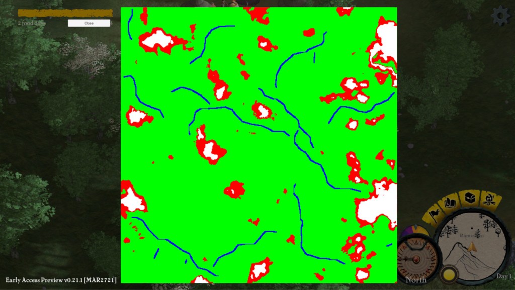 Finally, I started working in the more detailed biome handling for the terrain and vegetation, including the integration of the páramo (Alpine Tundra). This is still WIP but at least the map is now partitioned in biomes which will make it easier to create different themed areas (as well as integrate the upcoming Wetlands biome). In the process, I had to tackle an ugly bug that prompted me to create the procgen map visualizer tool, which will be helpful for future development (river placement looks horrible here, I know).