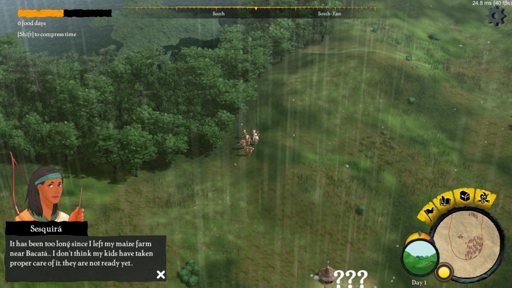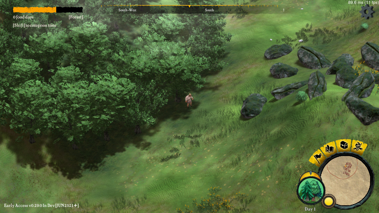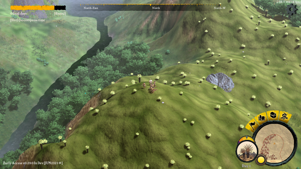 The biggest change is the addition of the “Compress time” command; now if you press Shift while exploring, time will happen at 2x so you will move faster. I believe this is a need to prevent long travels from becoming super boring but I am still experimenting with this (may add some +/- commands to lock the time compression rate).