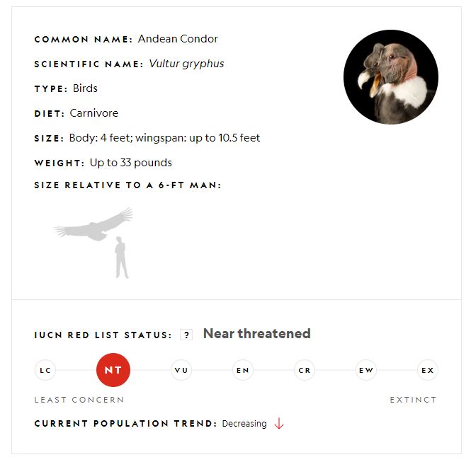 Andean condors are massive birds, among the largest in the world that are able to fly. Because they are so heavy (up to 33 pounds), even their enormous 10-foot wingspan needs some help to keep them aloft. For that reason, these birds prefer to live in windy areas where they can glide on air currents with little effort
