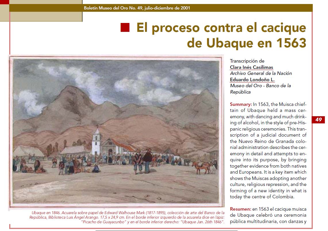 Following Manuel’s suggestions, Esteban read a transcription made by Clara Inés Casilimas and Eduardo Londoño, of a procedural document (see what I did there) done for a Spanish trial against the Muisca chieftain of Ubaque. “[…] a key item which shows the Muiscas adopting another culture, religious repression, and the forming of a new identity in what is today the centre of Colombia“.