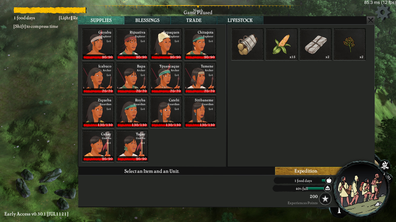 NovaMundi was released to Steam Early Access, including an intro sequence and further UI improvements. We finished adding the páramo biome and game saving/loading and made important changes such as random chatter to make exploration feel less empty, balancing of numbers, procedural generation of lakes and wetlands, changed the appearance of the automap for it to look like a Muisca painting on stone, and improved combat so you could check the stats of your enemies and have your units start in a formation based on their stats.