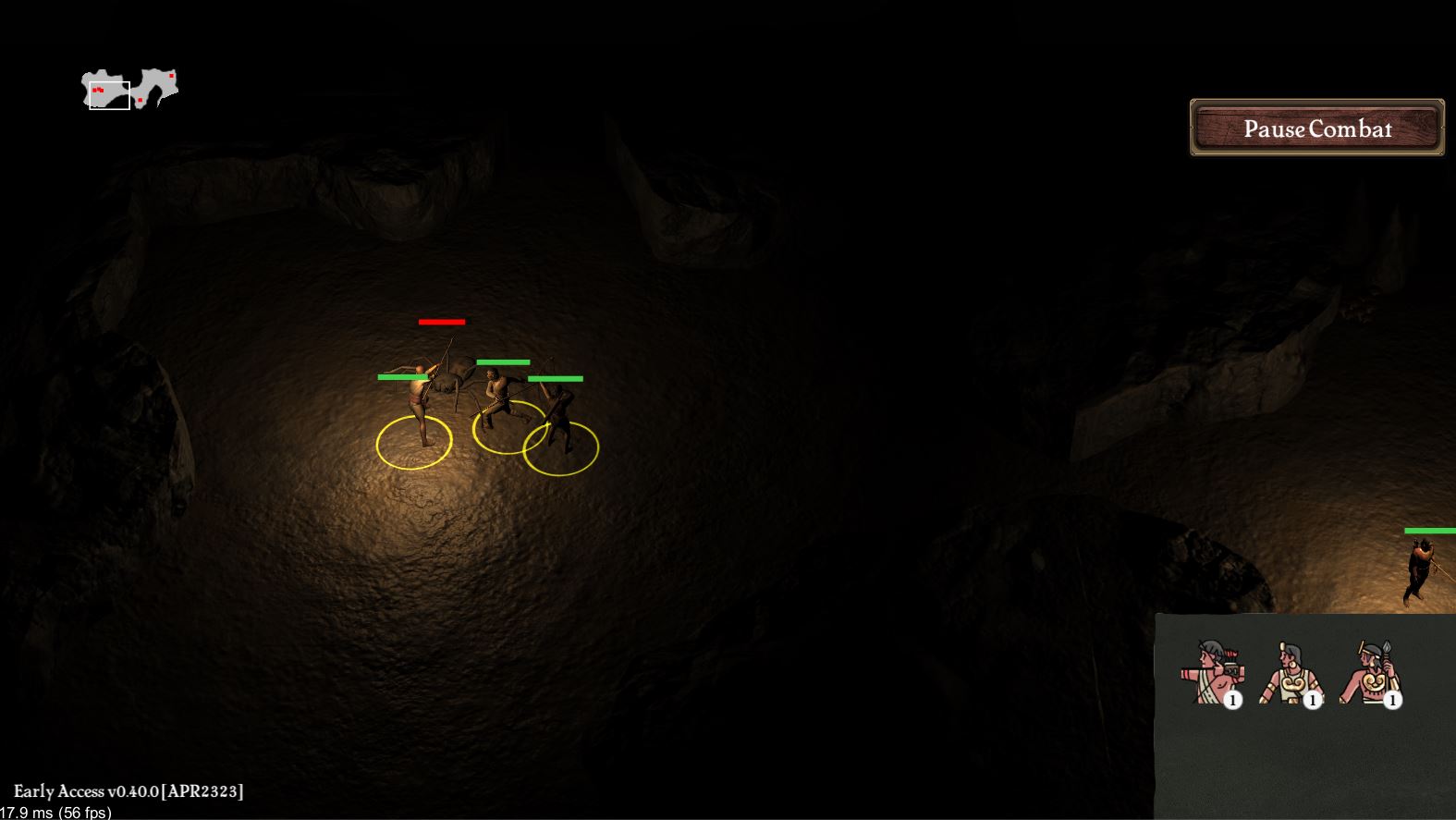 Out of nowhere, I decided to add a minimap to caverns exploration including markers for the units, an indicator for the camera location, clicking on the minimap to warp to that location, and uncovering the minimap as units explore it; it was a lot of work that probably won’t be fully exploited in the current version.