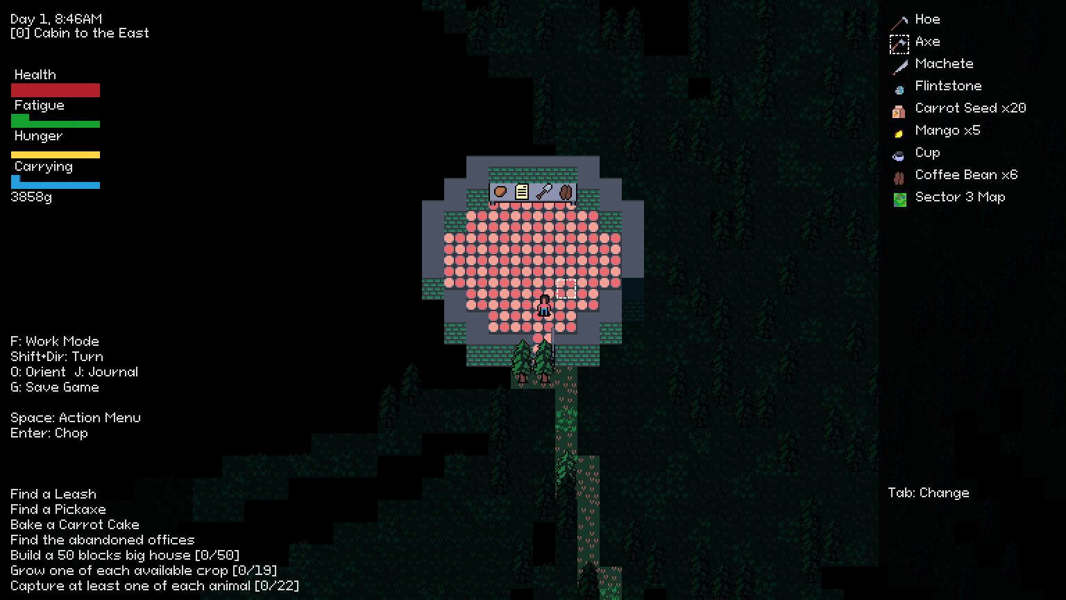 A new version of Emerald Woods, the chill no-combat solo farming roguelike where you can die, is now available!