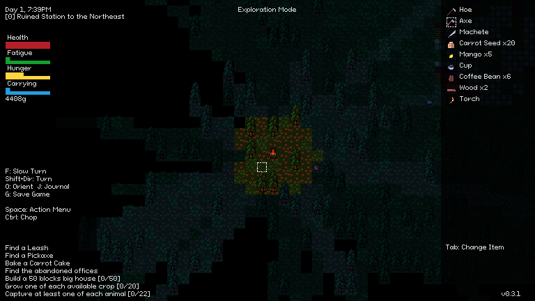 The major reason for the update, however, is a critical fix for a crash when campfires are axed down after restoring a game. It was fixed inadvertently as I refactored more stuffed away from vanilla JS and into TypeScript.