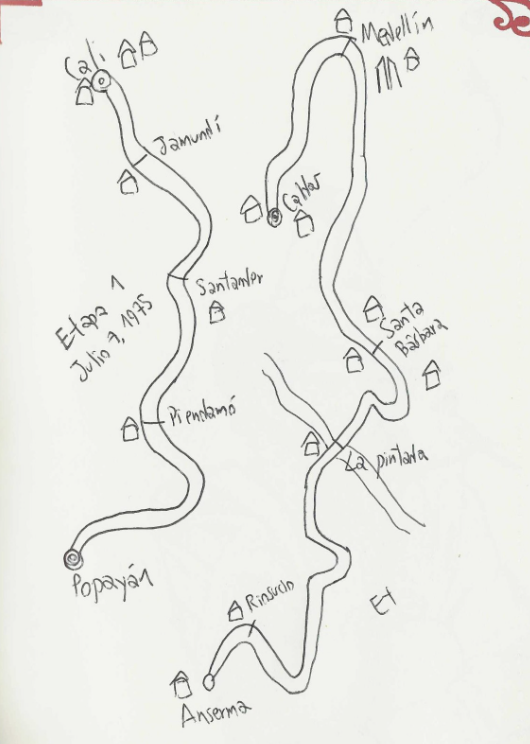 9:43 PM – I finish scribbling an idea for two routes of the Vuelta a Colombia 1977, Stage 1 (From Popayán to Cali) and Stage 15 (Caldas to Medellín then Anserma).