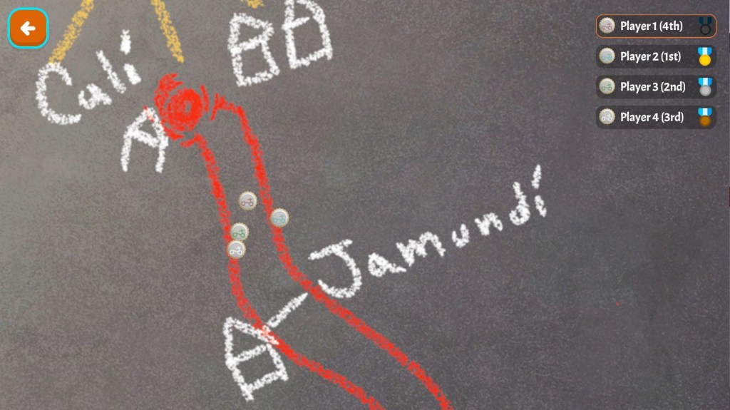 - When a player crosses the finish line, it will be marked as such and its rank will be displayed.
