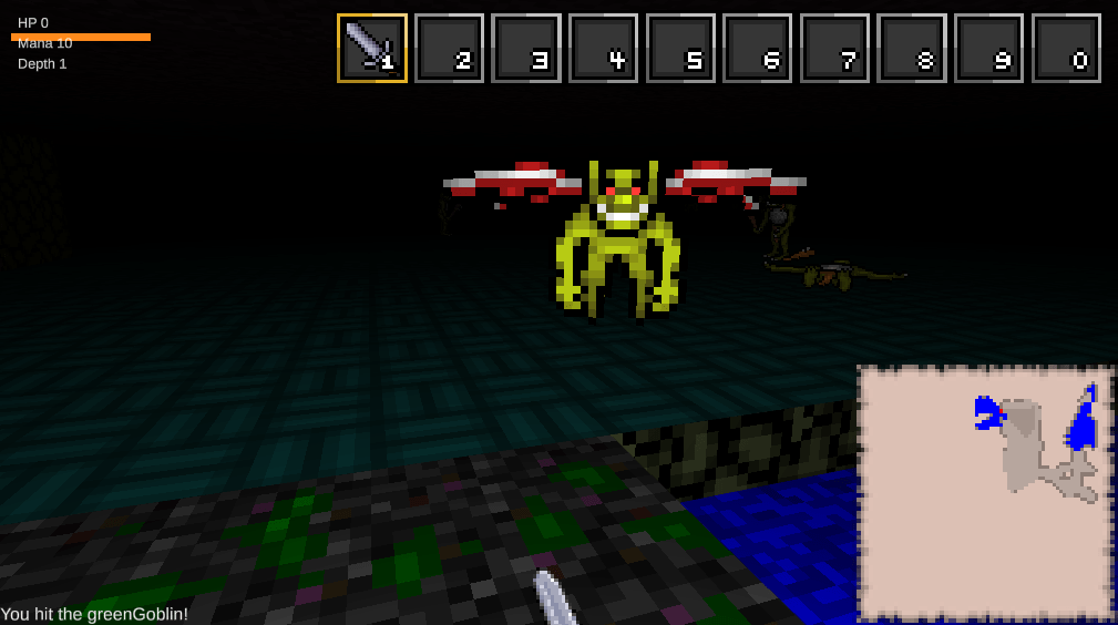 We continue with the goal of completing the “port” of the JS codebase and data into Unity; You can now pick up items and navigate between levels. There are also flying enemies.