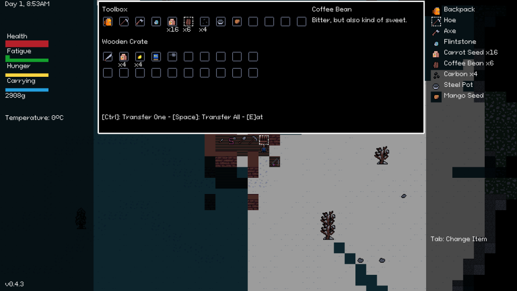 This version is light on gameplay changes but not completely devoid of them; berries now have a much lower chance of producing seeds to avoid overabundance of them. The boxes now have their capacity doubled, and carts capacity has been reduced to 20.