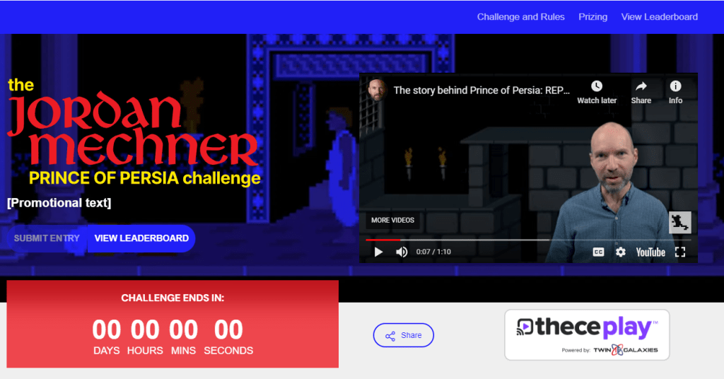 Well, some weeks ago he decided to organize a speedrunning contest powered by TwinGalaxies, to promote this same book; the top 3 spots competed for a signed version of the book, while the top 20 would get steam keys for the amazing “The Making of Karateka”, which I will be covering soon.