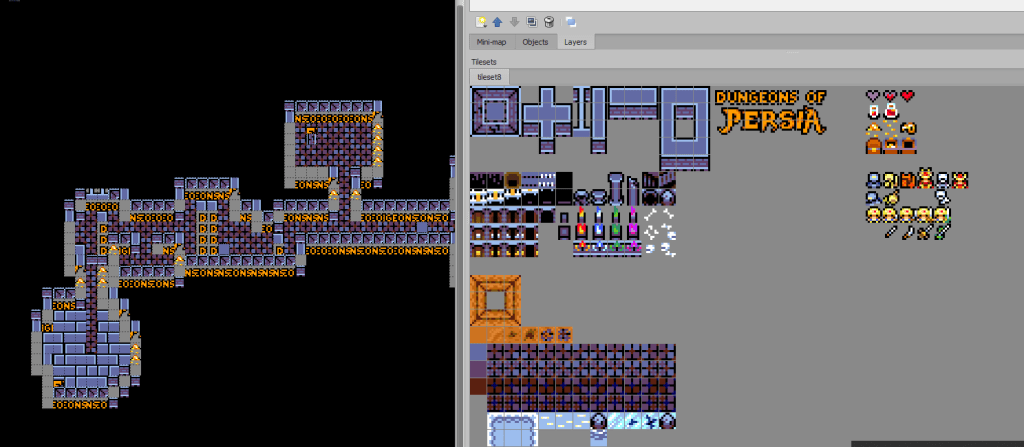 I also finished the adaptations to make “walk in the map” work in the trimmed down codebase. The Tiled map is now displayed correctly, and I wondered if it would be a good idea to have the game be fixed maps instead of procedural, to follow the design of the original Prince of Persia, with the player having the master the layouts of the levels to get good times.