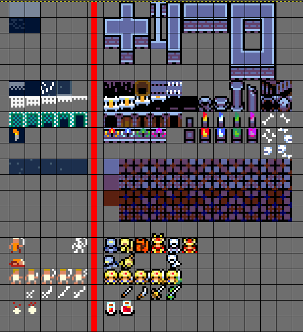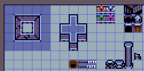 I did the first integration of the new tileset, so mine was gone (I still thought maybe I could have it as an option in the final version, in case there was time (there is never enough time)). The biggest change is the perspective of the walls and the “borders”, so making the levels will have an additional cost of manually selecting the correct wall and wall-top tiles.