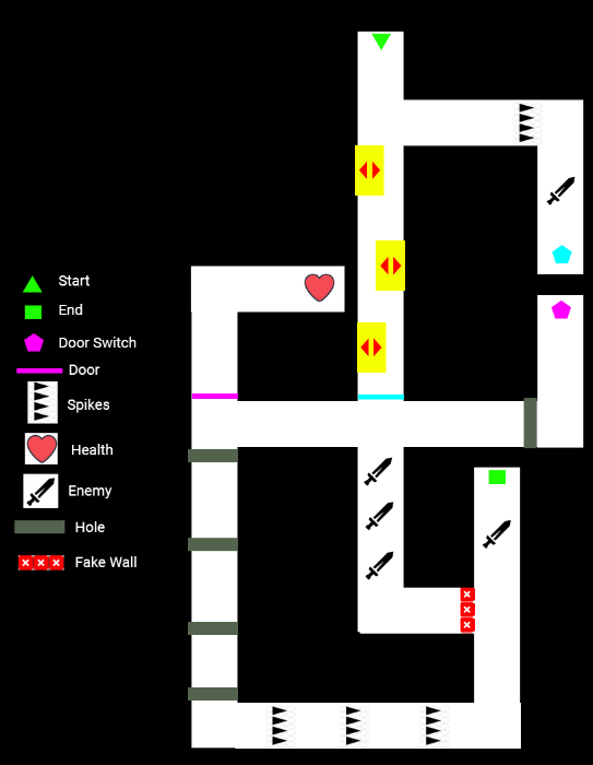 Note that in this initial ideation, rooms would be fixed (similar to Legend of Zelda 1 or Ananias Roguelike), and the dungeon was meant to be procedurally generated.