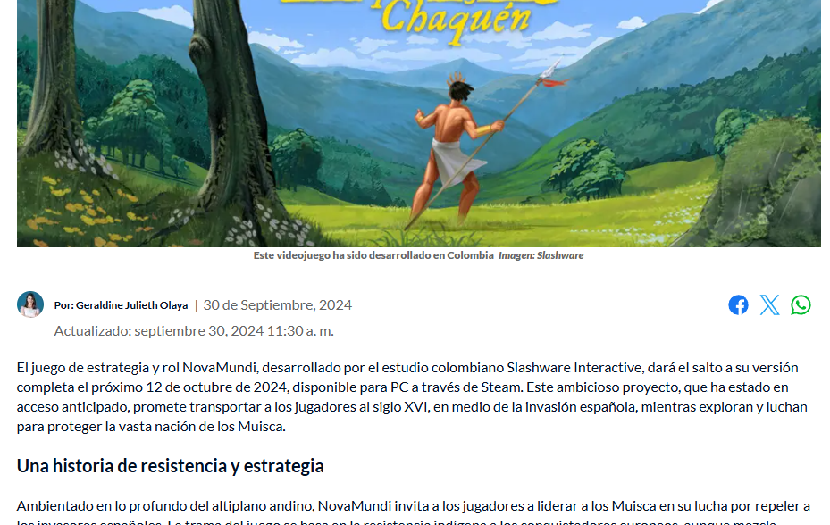 - We had a great article in El Colombiano (Spanish, local newspaper from Medellín, Colombia), talking about the game