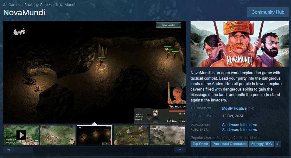 NovaMundi is a game of exploration and tactical combat in which you lead a band of warriors to defend their land from invaders. Delve into mysterious caverns to gain the aid from the spirits. A new challenge every time with generated landscapes of steep valleys and perilous jungle.