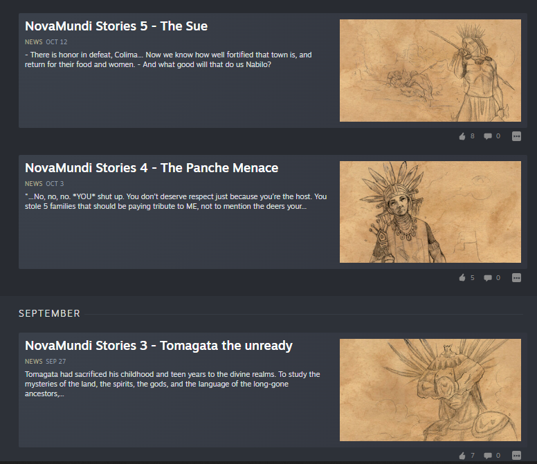 In the weeks prior to the release, we released some short stories we had prepared just for the occasion. The idea with them was to engage more people into the setting of the game, especially people that had never heard about this indigenous culture or this particular story. In that sense I think we succeeded because they have been mentioned already in the reviews.