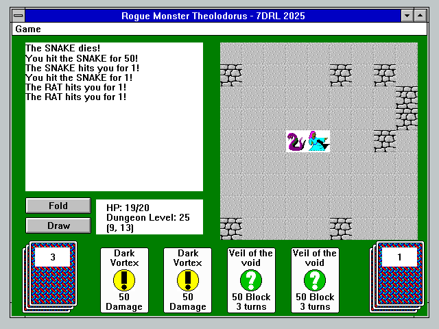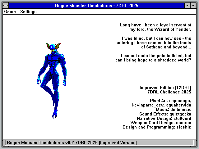 As I have been doing it for the last 21 years, I joined the 7DRL Challenge this year. I had wanted to make a game featuring Windows 3.1 visuals for a long time… my first computer was a 486 with Windows 3.1 and, although most of my gaming was DOS, I still feel some nostalgia for the particular experience of these early Windows games.