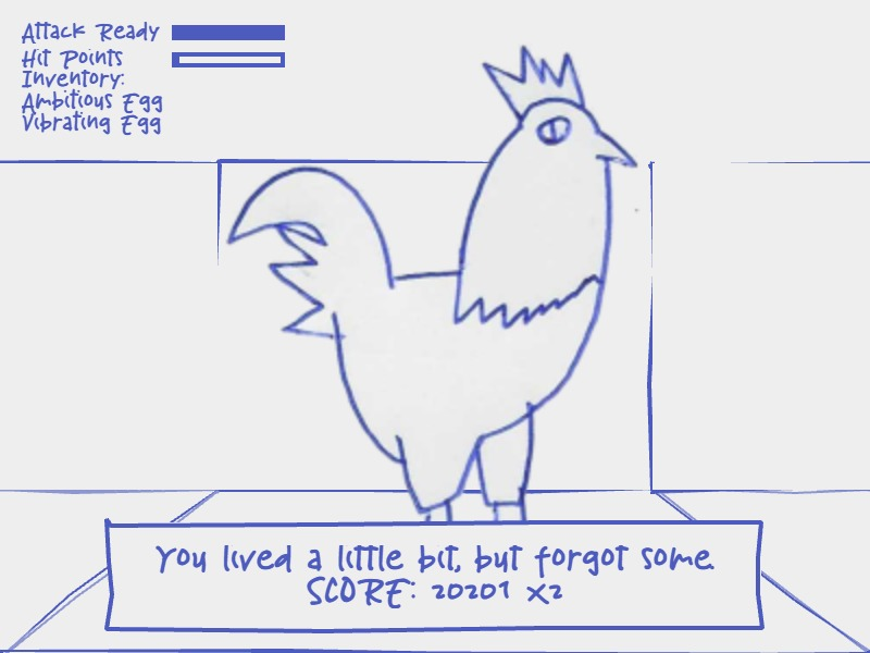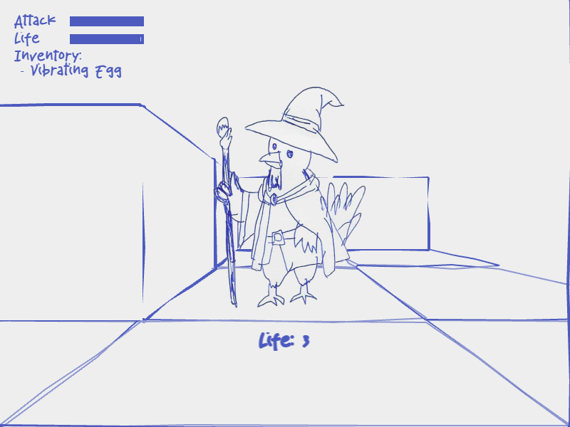 Blue Chicken is a very traditional first person dungeon crawler: Your mission is to find the blue chicken who is at the end of a sequence of rooms that gets rearranged every time you play; in these rooms you’ll have to solve puzzles and fight your way through, as you find magical artifacts that make you powerful. This is a speed dungeon crawler where the goal is to finish as quick as possible! Play online at https://slash.itch.io/blue-chicken-dx