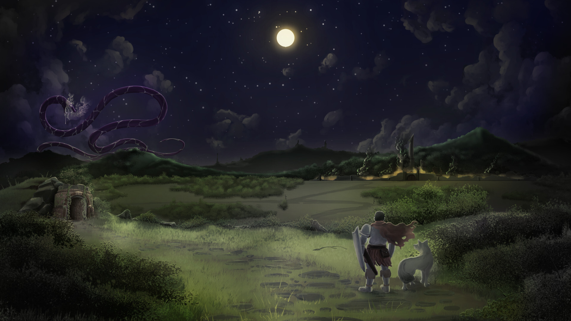 As development of the game progresses beyond the 7DRL, at some point of time, I asked the awesome pixel artist, Denzi, to create a title screen for the game. I sent him some ideas that he completely ignored and, instead, he sent me this image, the image of a vicious serpent/dragon-like creature.