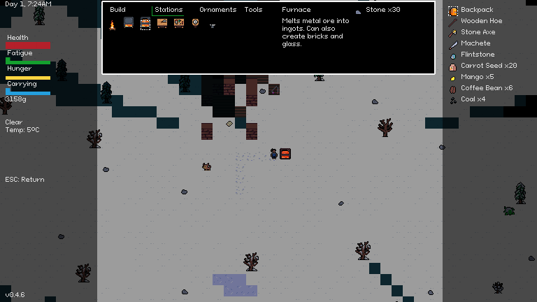 The crafting/cooking UI has been improved to display a description of the item/station to be crafted or cooked; this is especially useful to introduce players into the crafting stations and what they are going to be able to build using them.
