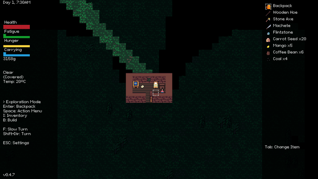 A follow-up to this week’s version, this one’s smaller but includes important changes. The starting area has been redesigned, instead of the weird ruined cabin with items spread all around, there’s now a useful shed with all the starting tools tidy placed inside a crate; more than the visual changes this is now important because it’ll make it easier to survive (specially during the winter) IF YOU CHOOSE not to take the hardcore route of survival (it’s your choice after all).