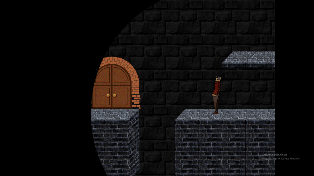 The second one I already mentioned, it was the darkness mask/fov around the player; I actually ended up implementing it in a very lazy way; it’s just a pitch black texture with a transparent circle in the middle that follows the player all around. I tried to implement it with proper masking but it was conflicting with the invisible objects mask, and there was no time to be elegant.