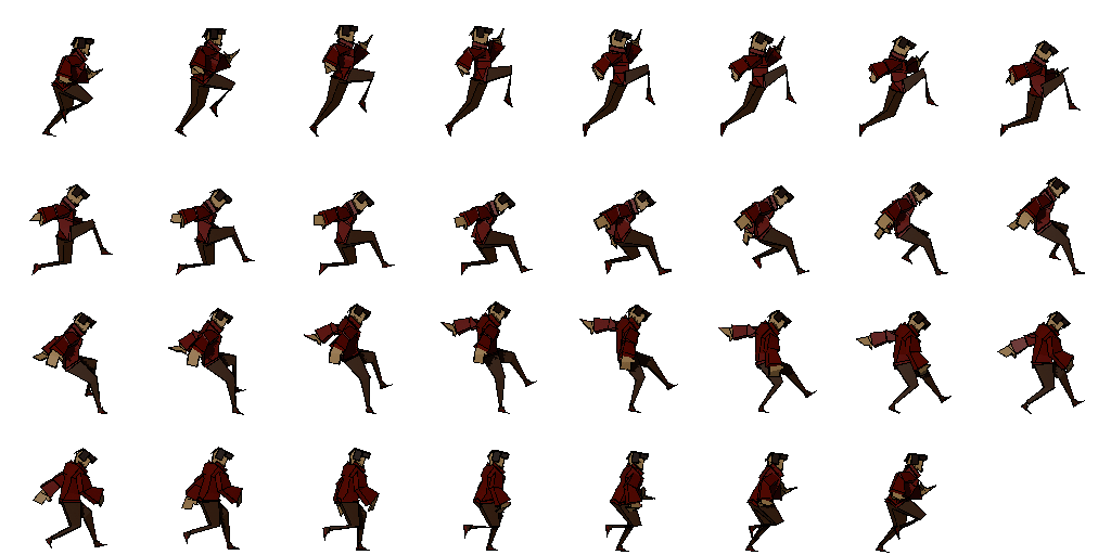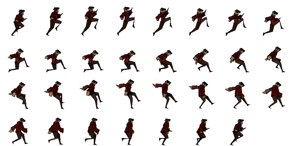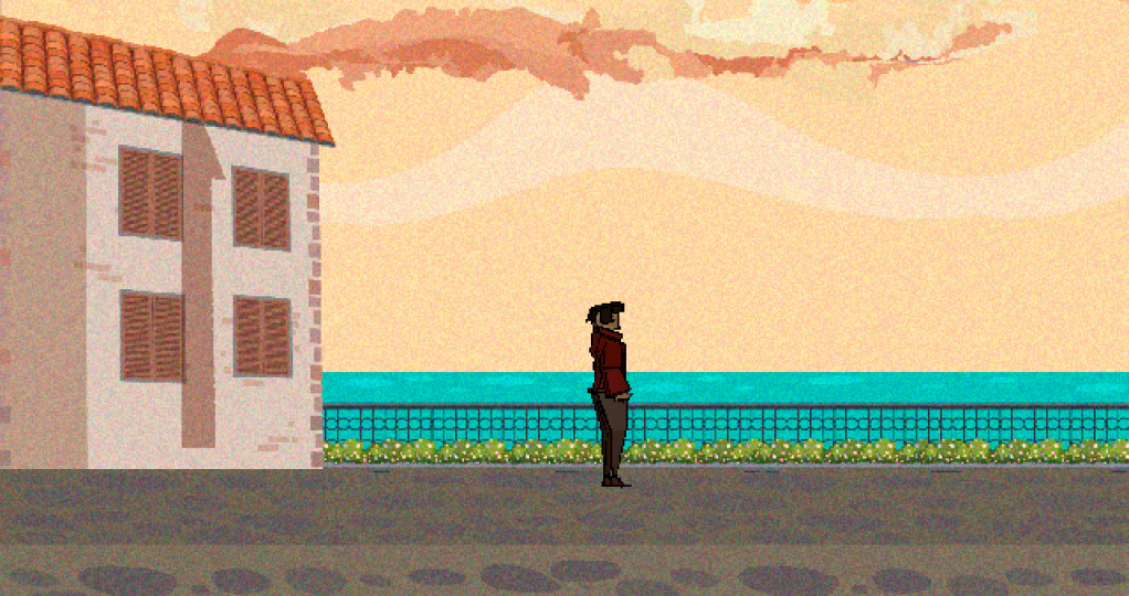 One of the most interesting aspects we managed to put in place in my opinion was a workflow to create the animations for the main character; we didn’t have a specialized pixel art animator in the team, and I left my 16mm video camera at home so rotoscoping relatives was out of the question.