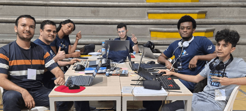 Unlike past year, this time I managed to arrive to the site before nightfall. I claimed a table and opened my laptop. Some minutes later I met with friend Camilo Ramirez as planned, that was the team so far – the idea was to meet new people and bring them in. Soon we were approached by a pair of friends: Santiago and Willian, with Santiago participating for their first time, they would bring the audio and visual skills the team needed.