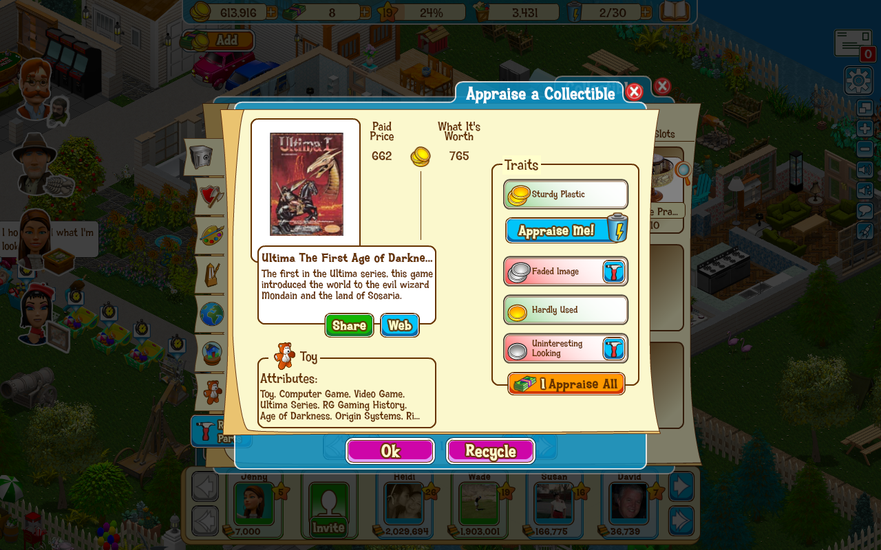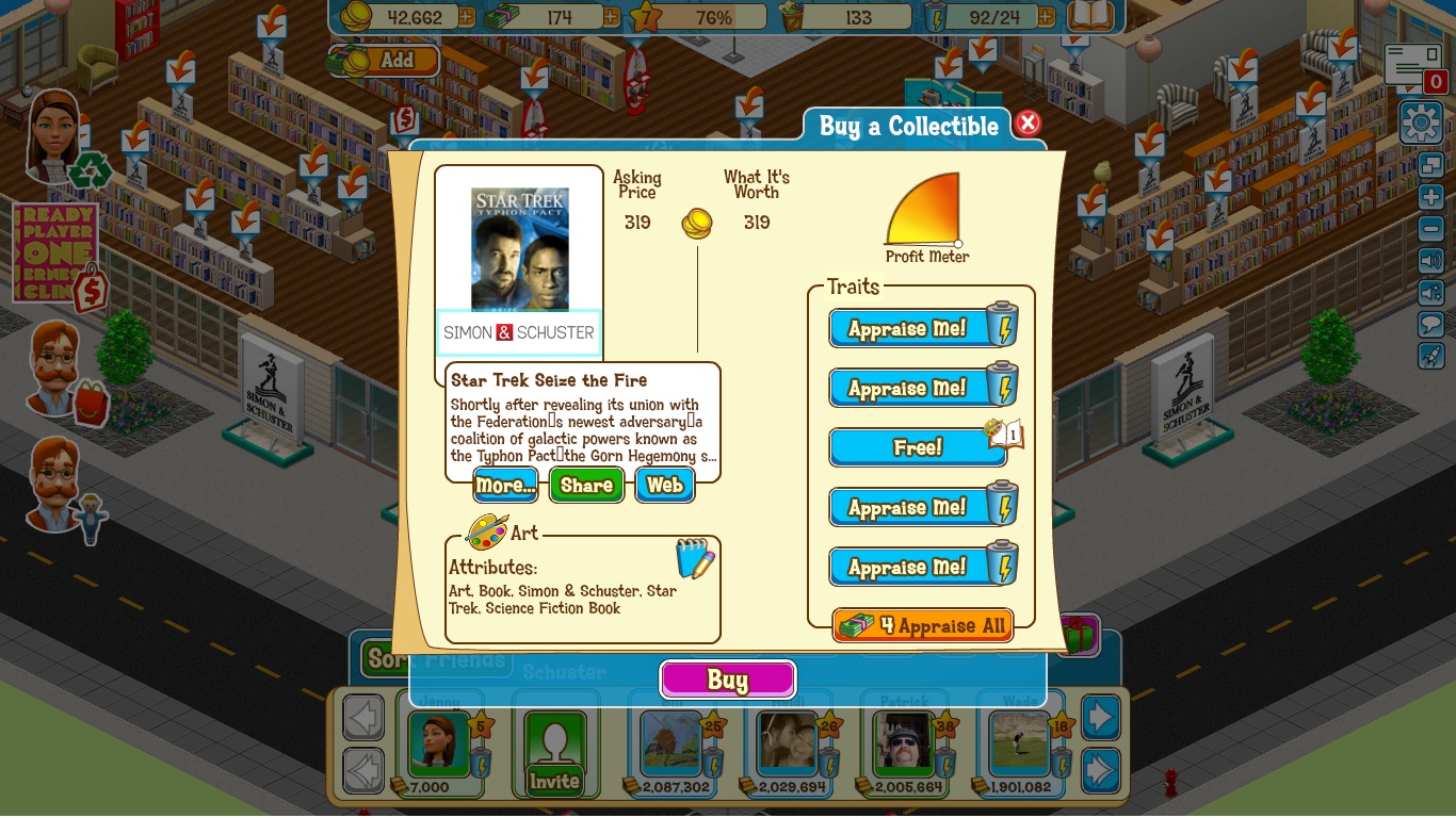 Each time you click Appraise Me, a trait related to that collectible will appear, either decreasing the asking price, raising the value of what it’s worth, or both. There’s a Profit Meter above the Traits box that will help you keep track on how good the deal is. Once you’re satisfied, you can either choose to Buy the item, or leave it.